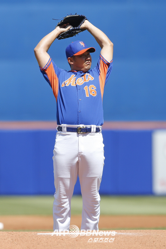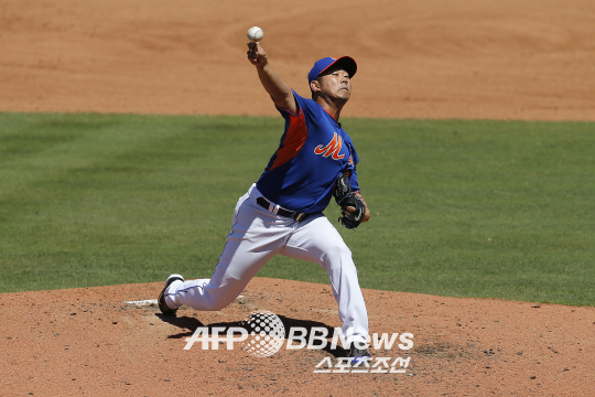 | 지난 19일 시범경기 디트로이트 타이거즈전에 앞서 몸을 풀고 있는 뉴욕 메츠의 마쓰자카 다이스케. ⓒAFPBBNews = News1 |