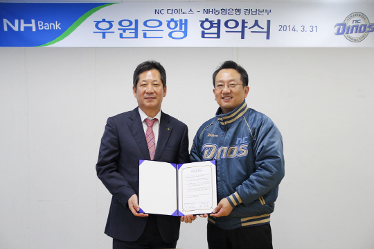 NC 다이노스가 NH농협은행 경남본부와 31일 마산구장에서 후원은행 협약을 맺었다.