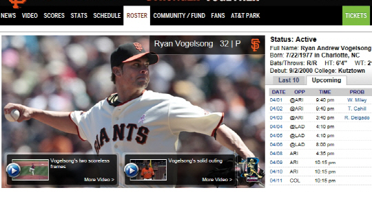 보겔송은 지난 시즌을 마치고 샌프란스시코 구단과 1년 계약을 했다.