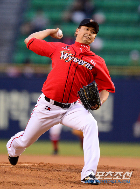 프로야구 LG와 SK가 2일 잠실구장에서 주중 3연전 두 번째 경기를 펼쳤다. 선발로 등판한 SK 윤희상이 힘차게 투구하고 있다. 잠실=송정헌 기자 songs@sportschosun.com/2014.04.02