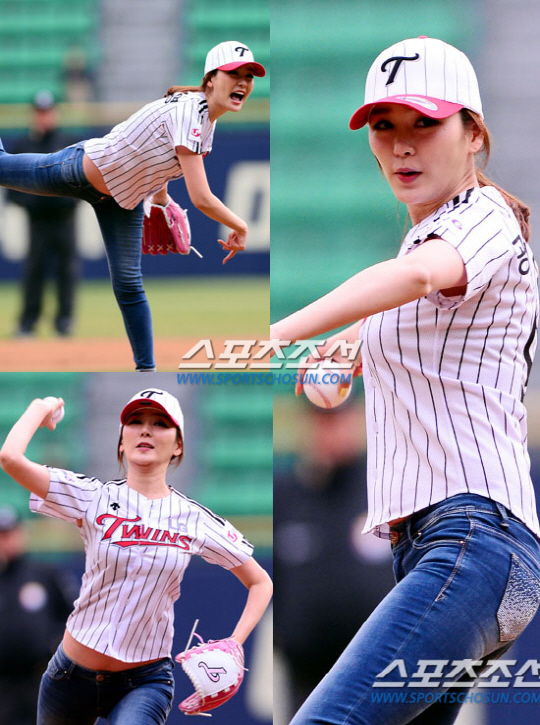 진지한 모습으로 마운드에 오른 그녀는 복근을 살짝 내보이며 정확한 자세로 깔끔하게 시구를 완성해 관중들의 큰 박수를 받았다.