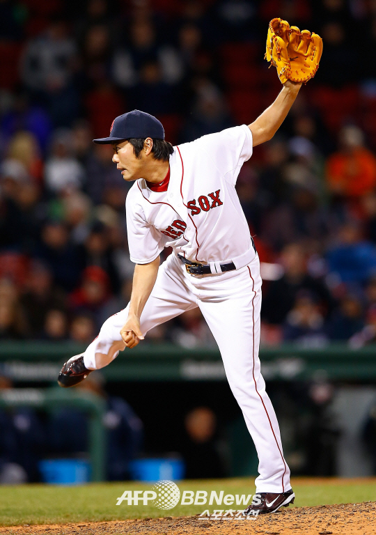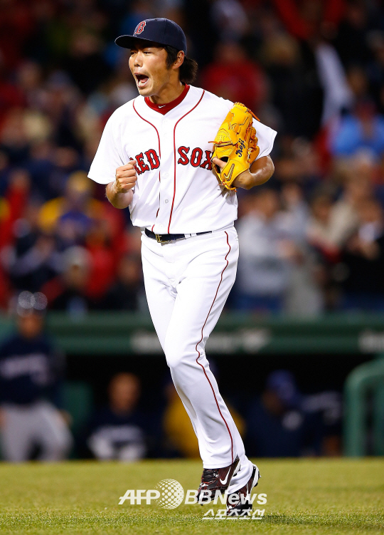 | 6일 밀워키전 9회 등판해 세 타자를 연속으로 삼진 처리, 이닝을 마무리한 보스턴의 우에하라 고지. ⓒAFPBBNews = News1 |