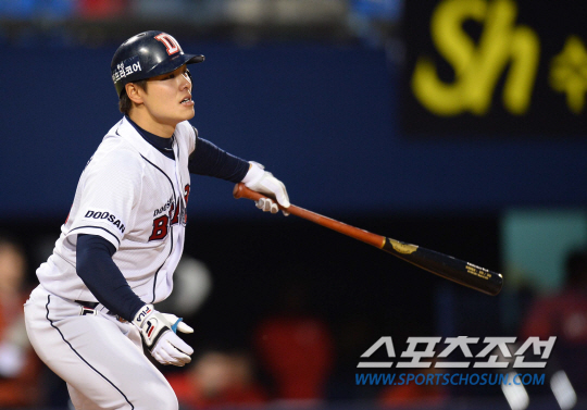 두산 톱타자 민병헌이 시원한 3루타를 날리며 팀승리를 이끌었다.
