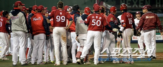 이후 선수들은 오해를 푼 뒤 더그아웃으로 돌아갔고, 경기가 속행되며 넥센과 KIA 벤치클리어링은 빠르게 정리됐다.