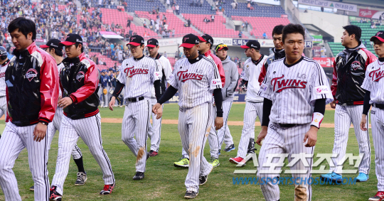 스윕 위기에 몰린 LG가 13일 잠실 야구장에서 NC를 다시 만났다. LG는 타선의 침묵으로 NC와 연장 전전 끝에 4대5로 패하며 스윕을 당하며 시즌 4연패에 빠졌다. 잠실=조병관기자 rainmaker@sportschosun.com/2014.04.13/