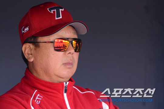 22일 오후 서울 잠실야구장에서 2014 프로야구 시범경기 KIA와 LG의 경기가 열렸다. 시합 전 KIA 선동열 감독이 선수들의 훈련을 지켜보고 있다. 잠실=김경민 기자 kyungmin@sportschosun.com / 2014.03.22.