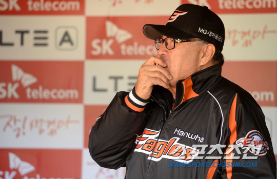 6일 인천 문학구장에서 펼쳐질 2014 프로야구 SK와 한화의 주말 3연전 마지막날 경기 전 한화 김응용 감독이 취재진과 이야기를 나누고 있다. 인천=허상욱 기자 wook@sportschosun.com