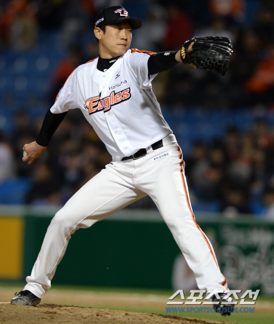 한화 김응용 감독은 20일 경기를 앞두고 "공을 밀어던진다. 2군에서 공을 많이 던지고 올라오게 지시했다"고 설명했다.