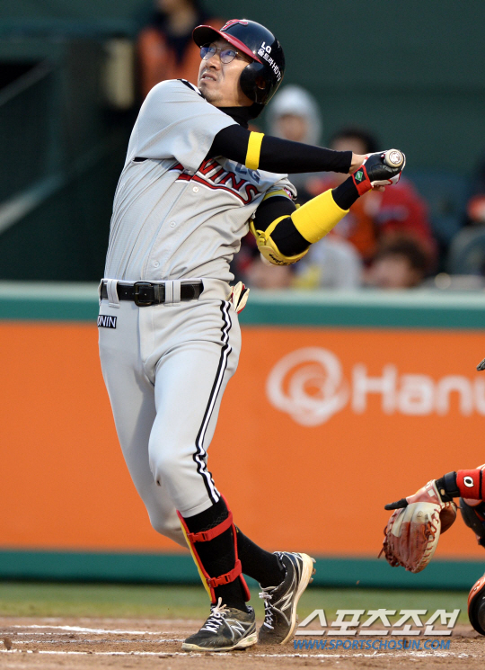 정성훈은 20일 대전구장에서 열린 한화 이글스와의 경기에서 팀이 5-8로 끌려가던 7회초 추격의 투런포를 때려냈다. 자신의 시즌 3호 홈런.