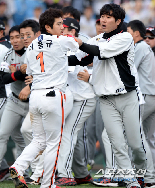 정찬헌-정근우-우규민 벤치클리어링/ 사진=허상욱 기자 wook@sportschocun.com