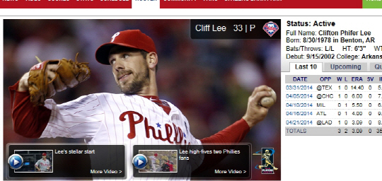 | 다저스전에서 멋진 호투를 펼친 필라델피아 좌완 선발 클리프 리. 사진캡처=메이저리그 필라델피아 홈페이지 |