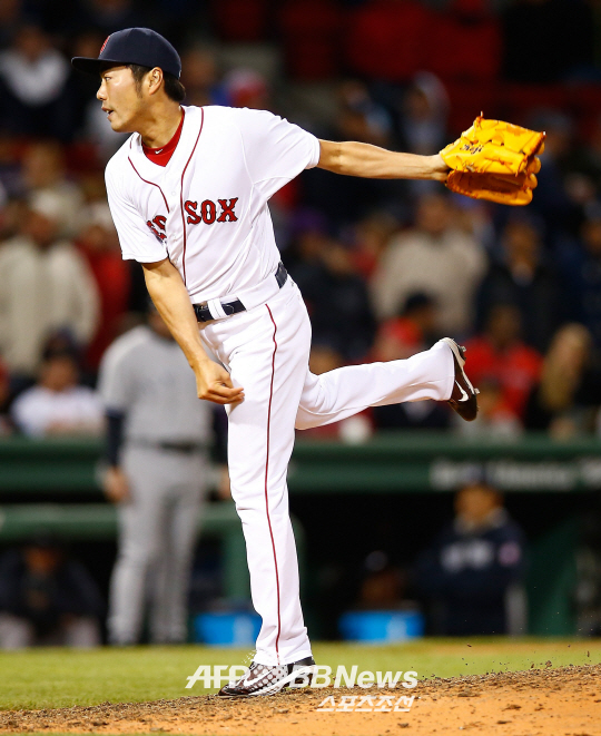 | 24일(한국시각) 뉴욕 양키스전 9회 등판해 1이닝 무실점을 기록한 보스턴 레드삭스의 우에하라 고지. ⓒAFPBBNews = News1 |