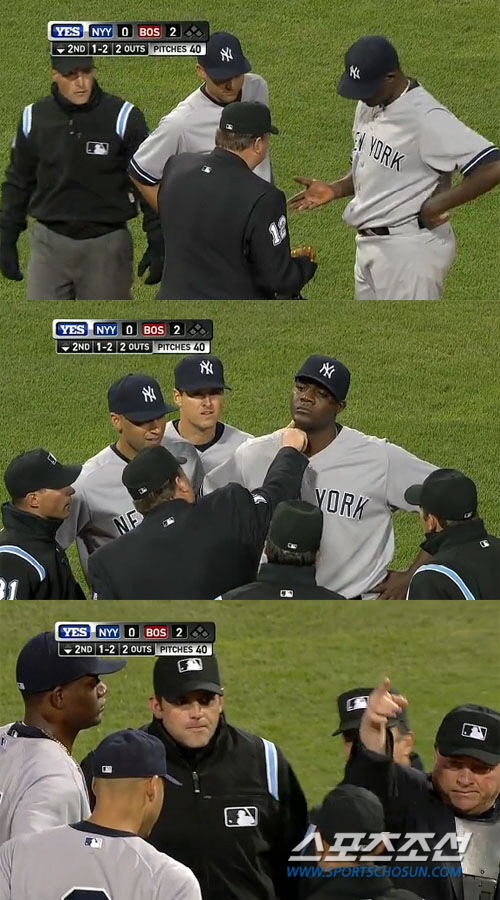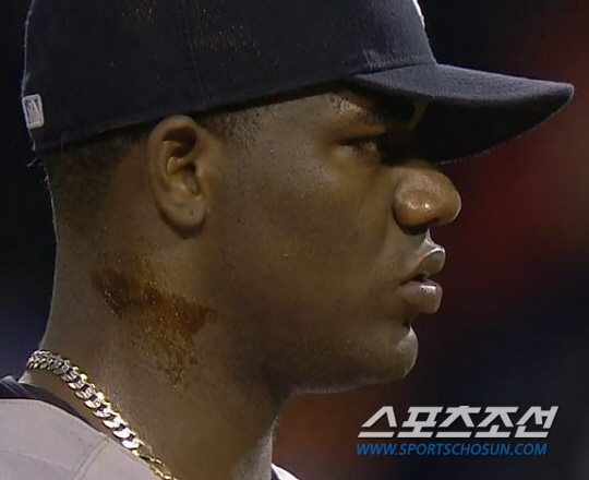 뉴욕 양키스의 선발투수 마이클 피네다가 목에 송진을 바른 채 부정투구를 하다가 퇴장당했다.