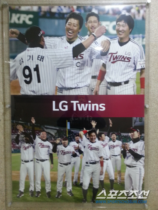 잠실구장 2층 벽에는 경기장을 홈으로 사용하는 LG 트윈스, 두산 베어스의 사진이 전시돼있다. 기자가 소개하는 이 사진은 LG 트윈스와 관련된 사진이다. 구단은 매 시즌을 앞두고 이 사진들을 교체하는데, LG는 지난해 정규시즌 2위를 확정짓는 날의 감동을 사진으로 표현했다.