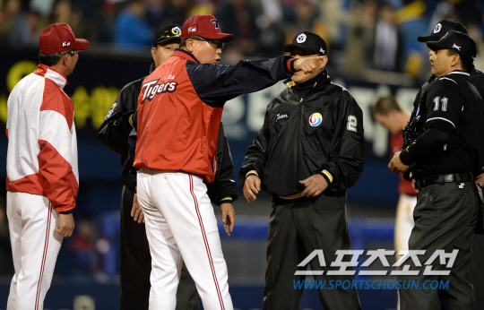 25일 LG-KIA전에서 나온 결정적인 오심 때문이다. 9회초 3-2로 앞선 LG의 수비. 2사 1, 2루 찬스에서 브렛 필의 타구가 마무리 투수 봉중근의 글러브에 맞고 굴절됐다. 봉중근은 뒤로 달려가 잡은 뒤 곧바로 1루에 송구, 아웃 판정을 받아냈다. 그런데 1루수 김용의의 발이 떨어진 것이 확인됐다. KIA 선동열 감독은 1루심 이계성 심판에게 항의했지만, 결국 받아들여지지 않았다.