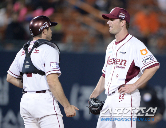 밴헤켄이 27일 목동 삼성전서 등판했는데 포수가 허도환이었다.