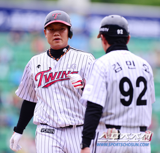 최승준 안타. 2014 프로야구 LG와 KIA의 주말 3연전 마지막 경기가 27일 잠실야구장에서 펼쳐 졌다. LG 2회말 공격 1사 1루에서 최승준이 좌전 안타를 치고 김민호 코치와 하이파이브를 하고 있다. 최승준의 프로데뷔 첫 안타다.