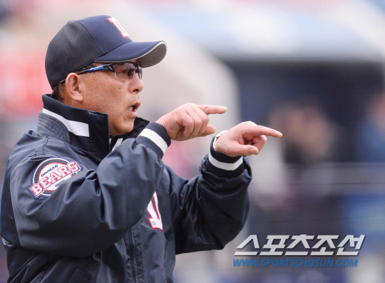 2014 프로야구 NC다이노스와 두산베어스의 경기가 27일 마산야구장에서 열렸다. 두산 6회초 무사 1루 오재원의 병살판정때 송일수 감독이 1루심 나광남 심판에게 어필하고 있다. 마산=최문영 기자 deer@sportschosun.com /2014.04.27/