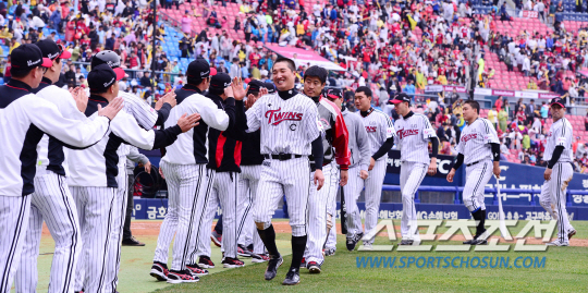 LG는 27일 잠실구장에서 열린 KIA 타이거즈와의 홈경기에서 0-1로 뒤지던 8회말 안타 3개와 내야땅볼로 2점을 뽑는 집중력을 발휘하며 2대1로 역전승을 거뒀다. 이로써 LG는 지난 25일부터 계속된 KIA와의 주말 홈 3연전에서 2승1패로 시즌 첫 위닝시리즈를 이뤄냈다. LG는 25일에도 KIA에 3대2로 역전승을 거둔 바 있다. LG 마무리 투수 봉중근은 이 두 경기에서 모두 세이브를 달성했다.