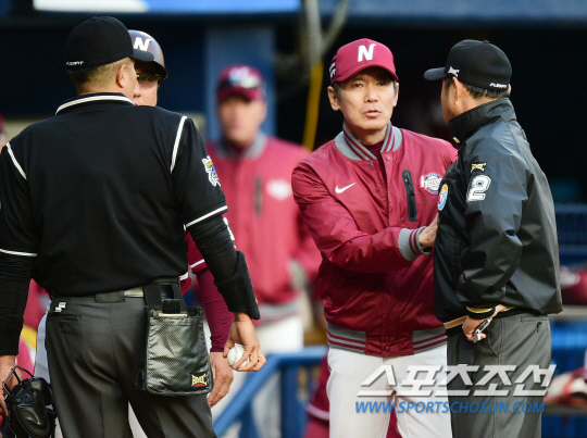 1일 잠실 두산-넥센전에서 심판들과 넥센 벤치가 충돌 직전까지 갔다. 스트라이크 볼 판정 때문이었다.