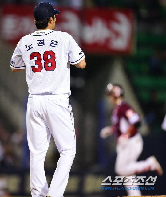 노경은은 0-2로 뒤처진 9회초 마운드를 정재훈에게 넘겼다. 정재훈은 9회 1이닝을 무실점을 막았다. 하지만 두산 타선은 넥센 마운드를 공략하지 못했다. 산발 8안타 1득점에 그쳤다. 칸투가 9회말 마지막 공격에서 솔로 홈런(시즌 7호)을 쳤다.