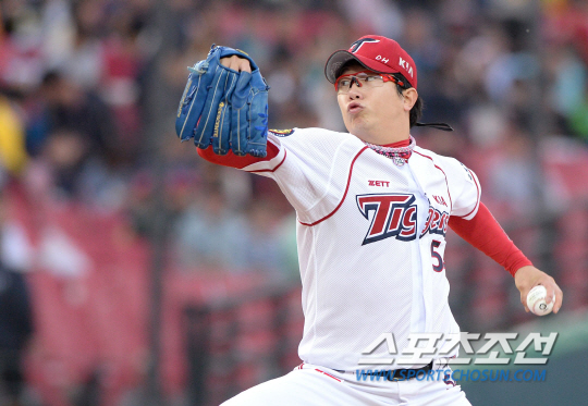 양현종은 7회 2사 1,2루의 위기를 무실점으로 넘긴 뒤 8회 김지훈으로 교체됐다.