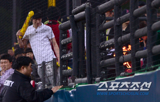 1일 광주 챔피언스필드에서 프로야구 KIA와 SK의 주중 3연전 마지막 경기가 열렸다. 6회 KIA의 공격을 앞두고 1루 응원단상 앞에서 불이 났다. 불은 어떤 관중이 가져온 소형 버너에서 났다. 불은 금방 꺼져 큰 피해는 없었다. 광주=송정헌 기자 songs@sportschosun.com/2014.05.01