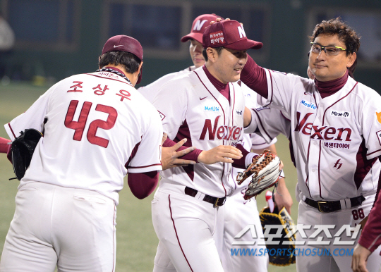 넥센과 롯데가 24일 목동구장에서 주중 3연전 마지막 경기를 펼쳤다. 양 팀은 시리즈 1승 1패를 기록중이다. 넥센 유한준 우익수가 4회 2사 만루에서 롯데 황재균의 어려운 타구를 다이빙캐치로 잡아내며 위기를 넘겼다. 덕아웃에 들어오며 동료들과 하이파이브를 나누고 있는 유한준. 목동=송정헌 기자 songs@sportschosun.com/2014.04.24