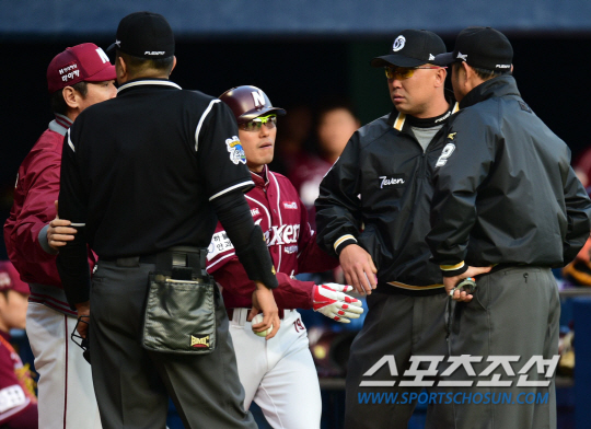 잠실에서는 심판들과 넥센 벤치가 충돌직전까지 가는 사태가 발생했다. 스트라이크 볼 판정 때문이었다.