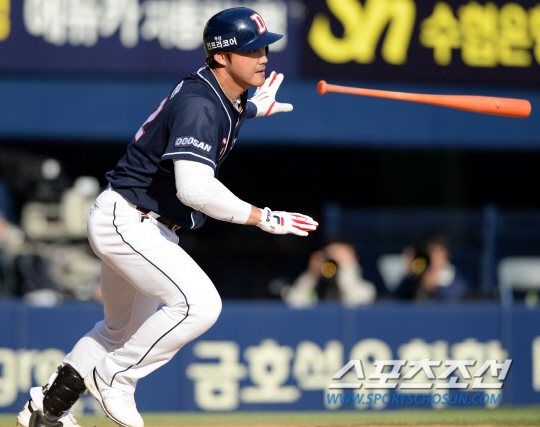 홍성흔은 1루를 밟은 후 헬멧을 벗고 팬들에게 감사의 인사를 했다.