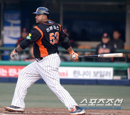 이번 2014시즌 초반만 하더라도 그의 존재감은 미약했다. 지난 3월 중순 시범경기 기간, 팀 훈련 도중 햄스트링 부상으로 개막전 엔트리에 들지도 못했다. 약 10일 늦게 1군에 합류한 그는 약 한 달 만에 롯데의 중심타자로 입지를 굳혔다. 처음에 5번 타자로 시작해 지금은 타격감이 안 좋은 최준석을 대신해 4번 타순에 들어가고 있다. 그는 타격 다수의 분야에서 최상위권에 올라 있다. 출루율(0.495) 1위, 타율(0.395) 장타율(0.697) 2위, 타점(22점) 공동 3위, 홈런(6개) 공동 4위에 랭크돼 있다. 히메네스의 타격은 꾸준한 맛이 있다. 5일까지 14경기 연속 안타 행진을 이어갔다. 멀티히트만 11경기, 득점권 타율이 무려 4할3푼5리. 전문가들은 히메네스는 장타력과 정교함을 함께 갖춘 선수라고 평가한다. 목동=송정헌 기자 songs@sportschosun.com/2014.04.23