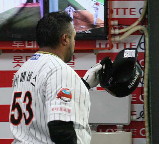 롯데 자이언츠 외국인 타자 히메네스(32)는 벤치에서 틈날 때마다 자신의 헬멧 안쪽에 붙은 스티커를 한참 응시한다.
