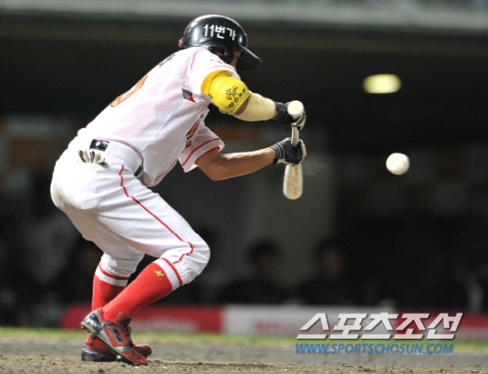 SK 와이번스의 외야수 조동화는 번트의 달인이라 할 수 있다.