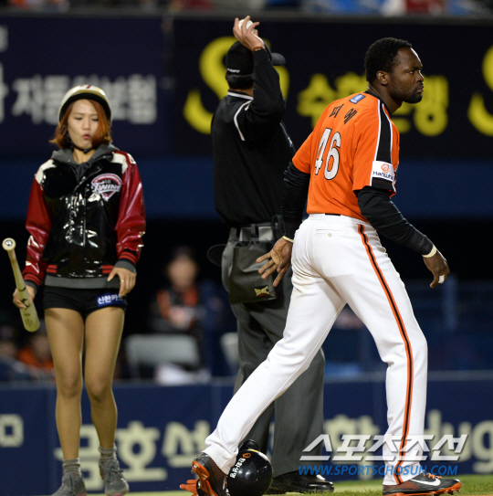한화의 '악동' 피에가 퇴장을 당했다. 7일 잠실구장에서 열린 LG와의 경기, 6-5로 뒤진 5회초 2사 2루 상황, 타석에 들어선 피에는 LG 정현욱의 투구에 삼진판정을 받았다. 피에는 주심의 판정에 납득이 가지 않는 듯 한참을 타석을 떠나지 못하다 배트와 장갑을 그라운드 바닥에 던져놓았고 이를 본 박기택 주심이 수비를 위해 외야로 나가던 피에를 다시 불러 퇴장명령을 내렸다. 잠실=허상욱 기자 wook@sportschosun.com