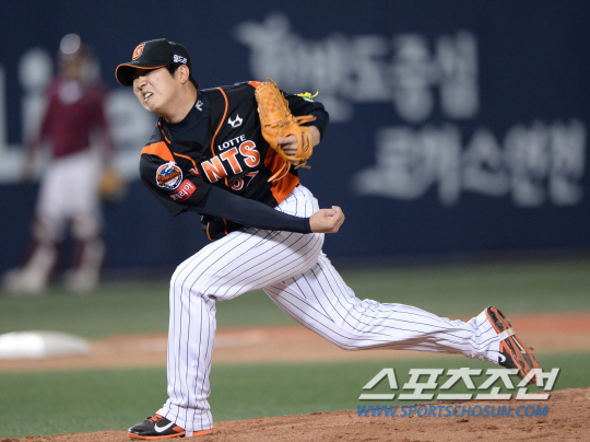22일 목동구장에서 프로야구 넥센과 롯데의 주중 3연전 첫 경기가 열렸다. 롯데 선발 장원준에 이어 6회 마운드에 오른 김성배가 힘차게 투구하고 있다. 목동=송정헌 기자 songs@sportschosun.com/2014.04.22