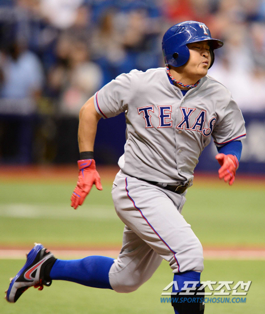 텍사스 레인저스 추신수가 7일(한국시각) 미국 플로리다주 세인트피터스버그 트로피카나필드에서 열리는 2014 메이저리그 탬파베이 레이스와의 원정경기에 1번타자 좌익수로 선발출전했다. 8회초 2사 추신수가 내야안타를 치고 1루를 향해 전력질주하고 있다. 추신수가 살아나간 후 다음타자 앤드루스가 좌월 투런포로 0-0의 균형을 깼다. 세인트피터스버그(미국 플로리다주)=정재근기자 cjg@sportschosun.com/2014.04.07/