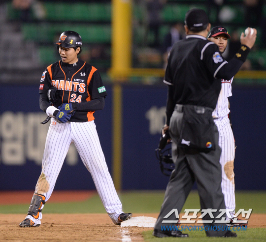 15일 오후 서울 잠실야구장에서 2014 프로야구 롯데와 LG의 경기가 열렸다. 9회초 무사서 롯데 김문호가 우중간 안타를 친 후 3루에서 아쉬운 표정을 짓고 있다. 김문호는 싸이클링히트에서 홈런만을 남겨놨었다. 잠실=김경민 기자 kyungmin@sportschosun.com / 2014.05.15.