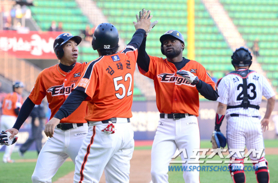 피에는 17일 대전에서 열린 SK와의 경기에서 팀이 0-2로 뒤지고 있던 6회말 1사 만루서 상대 투수 윤길현으로부터 만루홈런을 뽑아냈다. 볼카운트 1B에서 2구째 145㎞짜리 몸쪽 직구를 잡아당겨 오른쪽 담장을 살짝 넘어가는 아치를 그렸다. 피에가 홈런을 친 것은 지난 23일 대전 두산전 이후 24일만이며, 만루홈런은 첫 기록이다. 프로야구 전체로는 시즌 10호, 통산 636호 만루홈런. 대전=노재형 기자 jhno@sportschosun.com