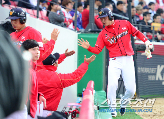 선취점은 SK가 냈다. SK는 3회 1사 1루서 이재원의 좌중간 2루타로 먼저 1점을 뽑았다. 이어 5회에는 1사후 김강민이 좌전안타를 치고 나간 뒤 2루 도루에 성공, 스코어링포지션을 만들자 조동화가 좌익수 쪽으로 적시타를 날려 2-0을 만들었다.