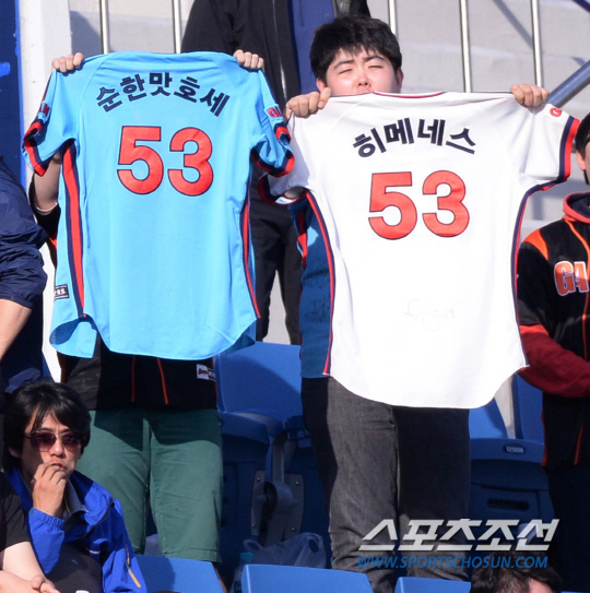 10일 오후 창원 마산종합운동장 야구장에서에서 2014 프로야구 NC와 롯데의 경기가 열렸다. 경기장을 찾은 롯데 팬들이 히메네스를 응원하고 있다. 창원=김경민 기자 kyungmin@sportschosun.com / 2014.05.10.