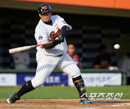 최준석은 18일 사직 넥센전, 1회 첫 타석에서 상대 선발 좌완 오재영으로부터 스리런 홈런을 쳤다. 롯데가 3-0으로 리드했다.
