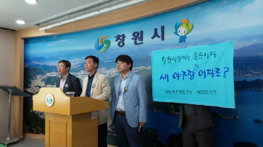 한편, 마산야구타운 조성 시민운동본부는 마산종합운동장 내 주경기장을 허물어 야구장을 신축해 NC의 새 홈구장으로 사용하자는 운동을 벌이고 있다. 현실적으로 최대한 빨리 새 야구장을 건립할 수 있는 위치다. 운동본부는 현 구장은 퓨처스리그(2군)와 각종 야구대회, 사회인 야구장으로 활용해 '야구타운'을 만들자고 주장하고 있다. NC가 연고지 이전이라는 최후의 카드를 꺼내기 전에 야구장 입지를 변경하자는 것이다.