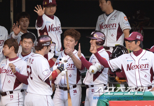 20일 목동구장에서 프로야구 넥센과 한화의 주중 3연전 첫 번째 경기가 열렸다. 넥센은 하영민을 한화는 송창현을 선발로 내세웠다. 넥센 박병호가 2회 선두타자로 나와 한화 송창현을 상대로 시즌 15호 솔로홈런을 날렸다. 덕아웃에서 동료들과 하이파이브를 나누고 있는 박병호. 목동=송정헌 기자 songs@sportschosun.com