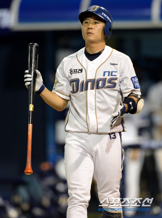 NC 유격수 손시헌이 불규칙 바운드로 인해 타구에 턱을 맞고 교체됐다.