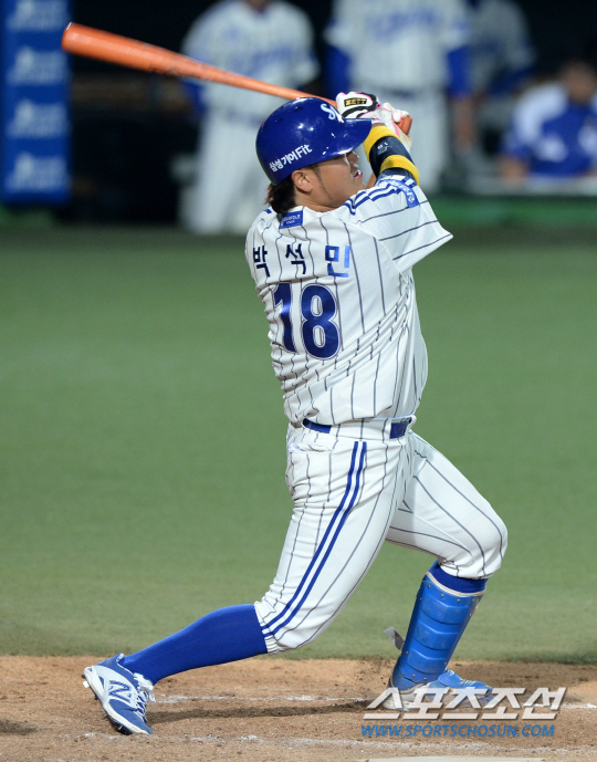 박석민은 1-0으로 앞선 5회 스리런 홈런을 쳤다.