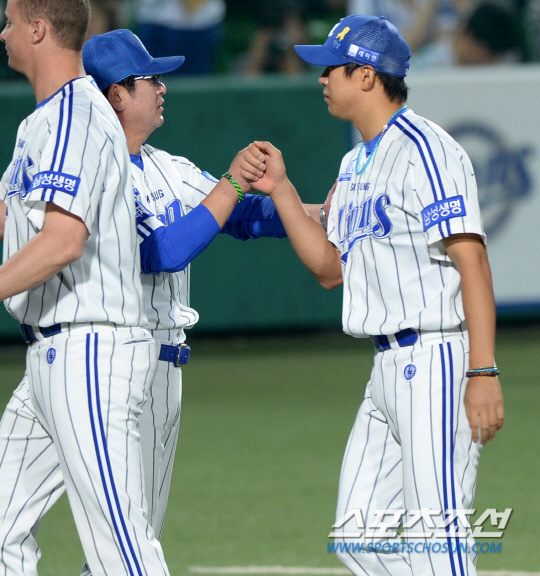 이런 삼성을 상대해서 승리하기는 현재로선 무척 어렵다. 지금의 삼성과는 될 수 있다면 만나지 않는게 최선의 방법이다. 그런데 어쩔 수 없이 싸워야 한다면 다음의 경우의 수를 생각해볼 필요가 있다. 지금의 삼성 전력 보다 강한 팀이 없기 때문에 이런 경우의 수를 고려해보는 것이다. 삼성전 승률을 높일 수 있는 5가지 경우의 수다. 이번 2014시즌 삼성을 상대로 4승1패로 강한 모습을 보인 두산 베어스는 예외일 수 있다. 삼성과 한화의 주중 3연전 첫번째 경기가 13일 대구 시민구장에서 열렸다. 삼성이 7-1로 승리하며 연패탈출에 성공했다. 오늘 승리로 2승째를 거둔 윤성환이 경기 종료 후 류중일 감독과 기쁨을 나누고 있다. 대구=허상욱 기자 wook@sportschosun.com/2014.05.13/