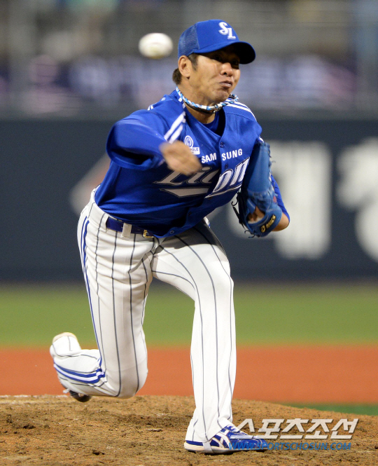 NC와 삼성의 주말 3연전 첫번째 경기가 18일 창원 마산구장에서 열렸다. 8회말 2사 2,3루 위기때 마운드에 오른 삼성 임창용이 NC 조영훈을 상대로 힘차게 공을 던지고 있다. 창원=허상욱 기자 wook@sportschocun.com/2014.04.18/ |