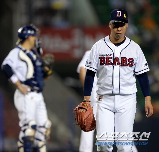 유희관은 오현택과 교체됐다. 잠실=류동혁 기자 sfryu@sportschosun.com
