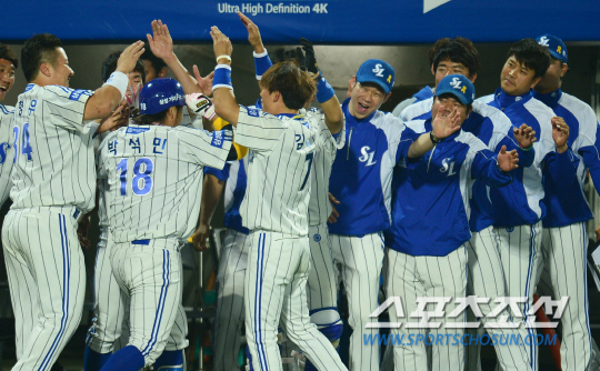 넥센 히어로즈와 삼성 라이온즈의 2014 프로야구 경기가 23일 대구 시민운동장 야구장에서 열렸다. 6회말 2사 삼성 박석민이 최형우에 이어 연속타자 홈런을 치고 들어오며 동료들의 축하를 받고 있다. 대구=정재근 기자 cjg@sportschosun.com/2014.05.23/ |