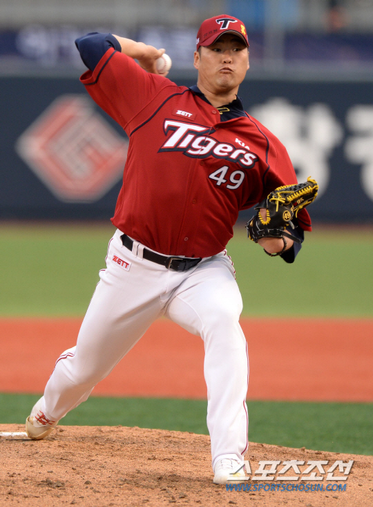 이날 김진우는 최고 148㎞의 포심과 슬라이더(130~133㎞) 커브(112~127㎞) 체인지업(121~135㎞) 등을 다양하게 섞어던지며 롯데 타선을 힘으로 눌렀다. 4회 1사 후 황재균에게 우전안타를 맞기 전까지 외야로 날아가는 타구가 없었다. 3회에 1사 1루에서 포수의 패스트볼로 2루에 진루한 정 훈이 손아섭의 내야 안타 때 홈으로 들어온 것이 5회까지 내준 유일한 실점. 김진우의 자책점은 아니었다.
